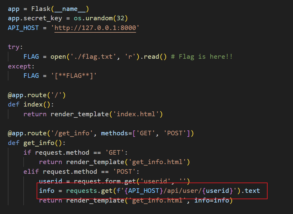 입력받은 user에 대한 정보를 가져올때 사용자의 입력값에 대한 검증 없이 그 값을 그대로 이용하여 요청을 진행한다.