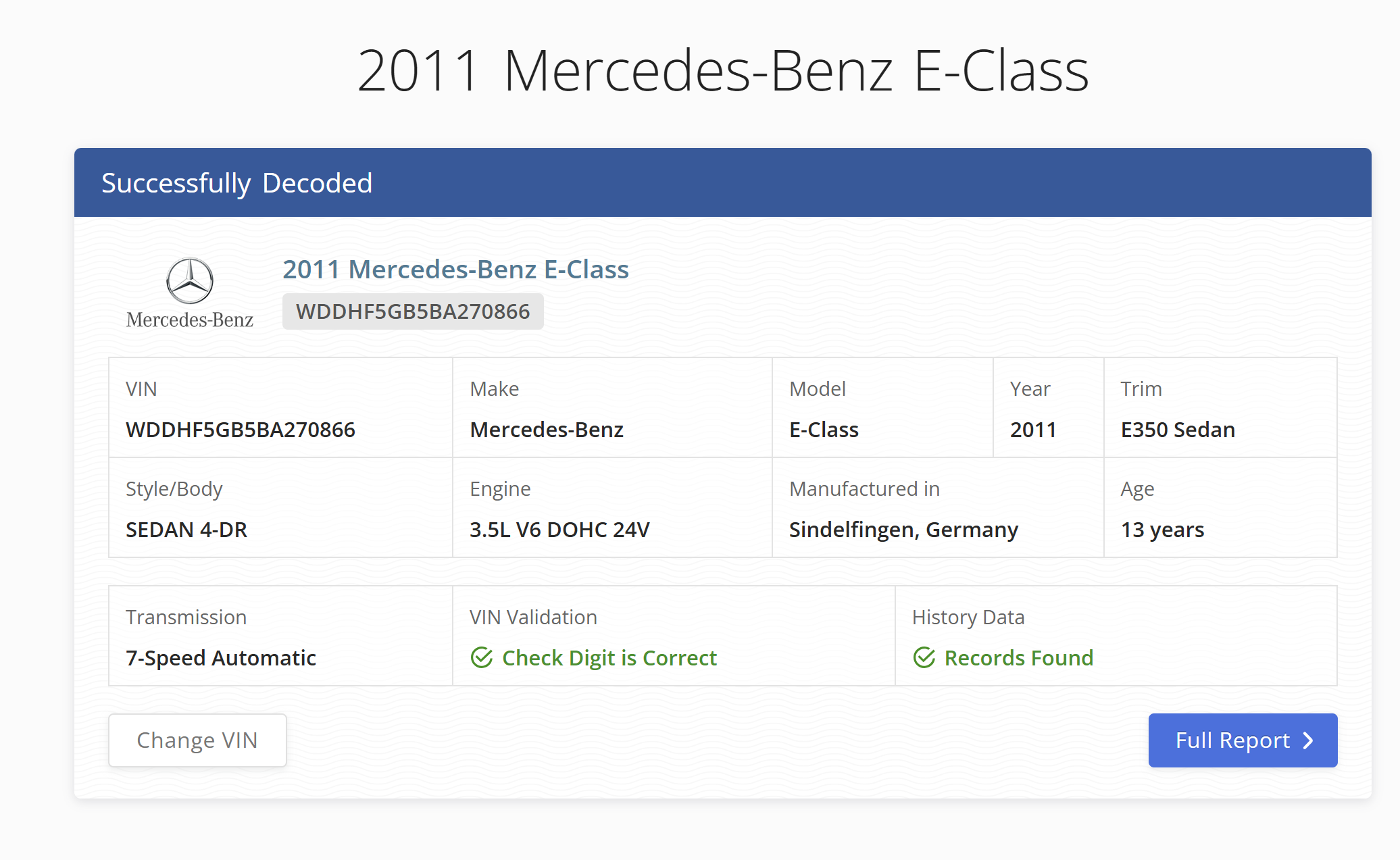 해당 값을 VIN 조회 사이트를 통해 조회 시 아래와 같은 결과를 확인 가능하다.