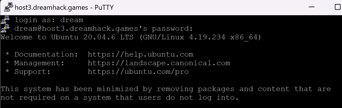 웹해킹 문제와는 달리 이번 문제의 경우 SSH 접속을 통해 서버에 연결해야 한다.