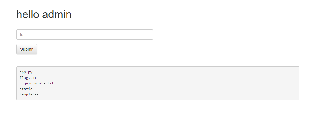 if cmd == '' and key == KEY:return render_template('flag.html', txt=FLAG)cmd가 빈 곳이고 key가 KEY(FLAG를 인코딩하고 해시화한 값)일 경우 FLAG를 리턴