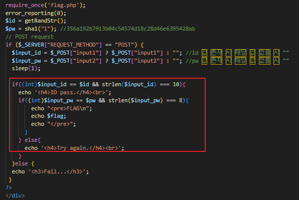 이때 주목해야 할 부분은 입력 받은 id(input_id)와 pw(input_pw)를 int 형으로 변환하여 비교한다는 것이다.