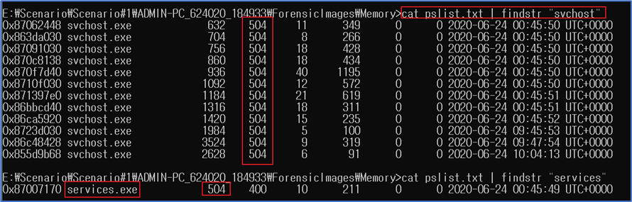 여기서 위 빌트인 프로세스들이 출력된 이유는 해당 프로세스들은 보통 System32 폴더 안에 속해 있는데 이러한 파일들은 Path가 설정되어 있어 절대경로가 지정되지 않고 실행되기에 결과값으로 나타났다.